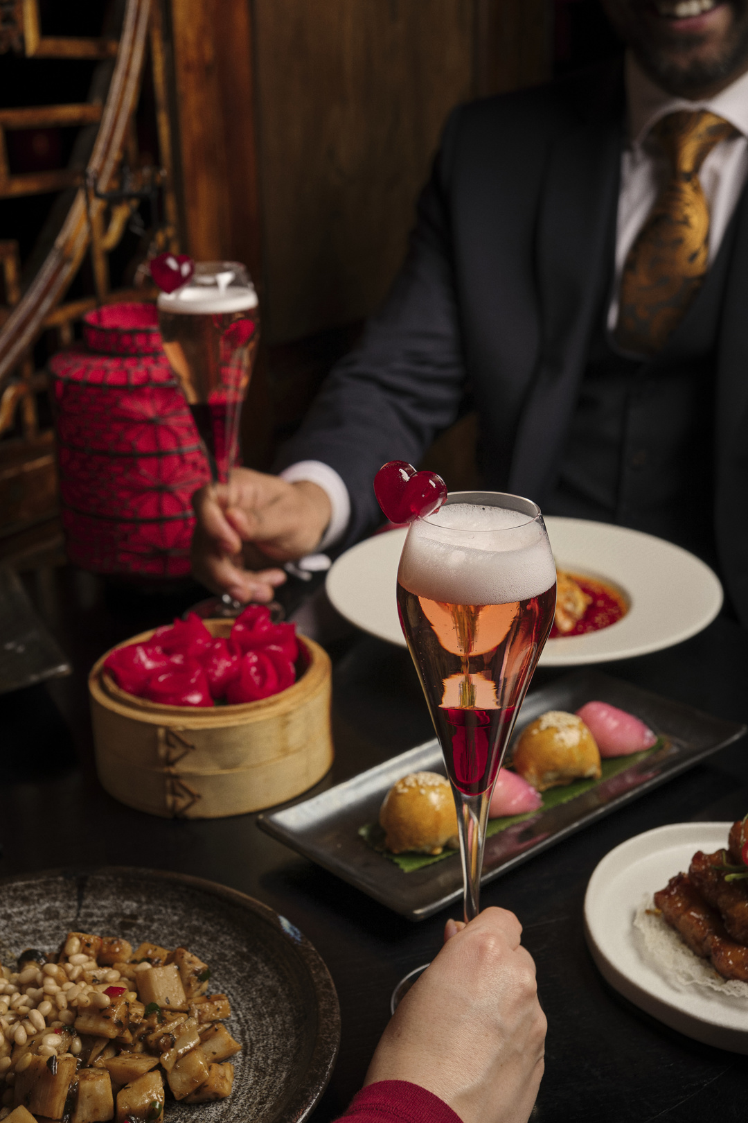 Elevate the evening with a Bouquet of Rose Dim Sum or Half Roast Peking Duck with pancakes.