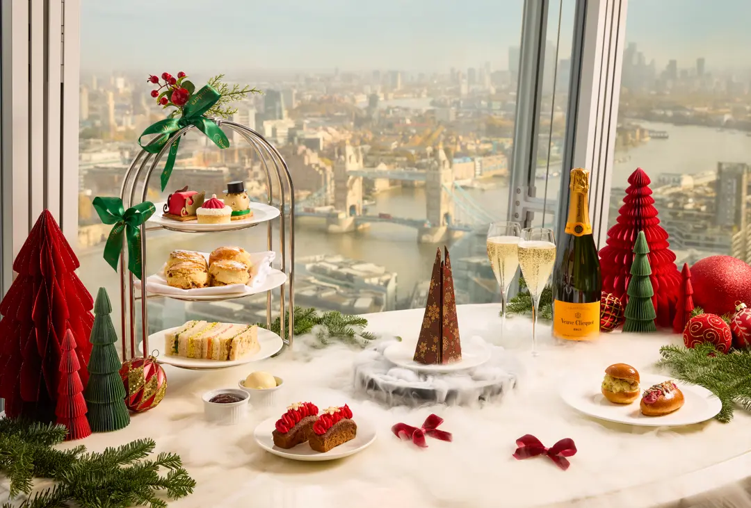 Take in panoramic views of London from 35 floors up while enjoying a special Festive Skyline Afternoon Tea at TĪNG Lounge. Indulge in seasonal delights including a variety of festive finger sandwiches, a Parsnip & Truffle Burger and a Roasted Dry-Aged Beef sandwich with Horseradish and Watercress. End on a sweet note with desserts like the Santa’s Hat and the Christmas Rocher, alongside freshly baked scones with cranberry jam and clotted cream.