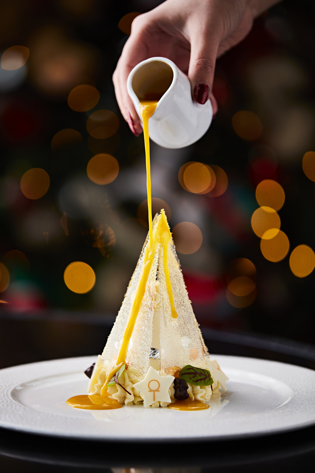 With the Christmas tree proudly positioned in the atrium, Head Pastry Chef Giampiero Traviglia has crafted a special dessert inspired by 'The Giving Tree.' Introducing 'The Christmas Gift': a delectable pudding featuring Breton, white chocolate mousse, fresh mango, mango puree, and a Shard tuile, designed to mirror the building. This delightful dessert will be available during dinner throughout the festive season, with a portion of each special sold dedicated to be donated to Great Ormond Street Hospital.