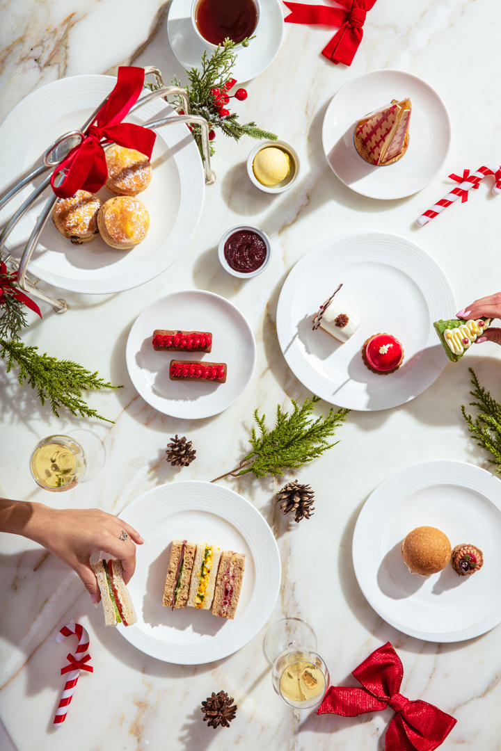TĪNG Lounge will serve a festive version of its Skyline Afternoon Tea over the winter season, inspired by the signature scents from the Jo Loves Christmas Collection and featuring a miniature Shard pastry decorated with Warner House’s Knotted Sash design. Sweet treats include a Red Bauble filled with green shiso mousse, grapefruit and black pepper, a white chocolate, pistachio, sour cherry Christmas Tree pastry, and a blackcurrant and chestnut ‘Shang Mont Blanc’. The High Tea will be served on a festive stand decorated with crimson bows, berries, and sprigs of pine. Classic plain and cranberry scones with jam and clotted cream will be accompanied by special-edition marble cake scones with chocolate and candied orange.
