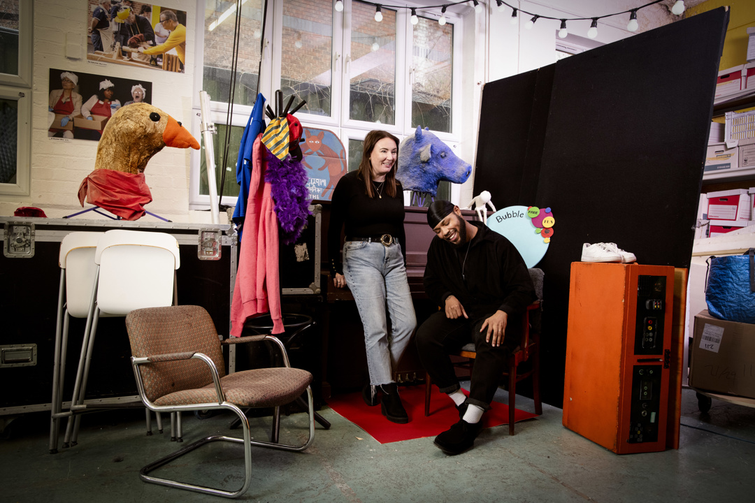 The scene for our interview is a rehearsal room in London Bubble's Rotherhithe HQ – a magical warren of creative spaces, including a Wonka-esque prop workshop, which they have raided for their photoshoot.