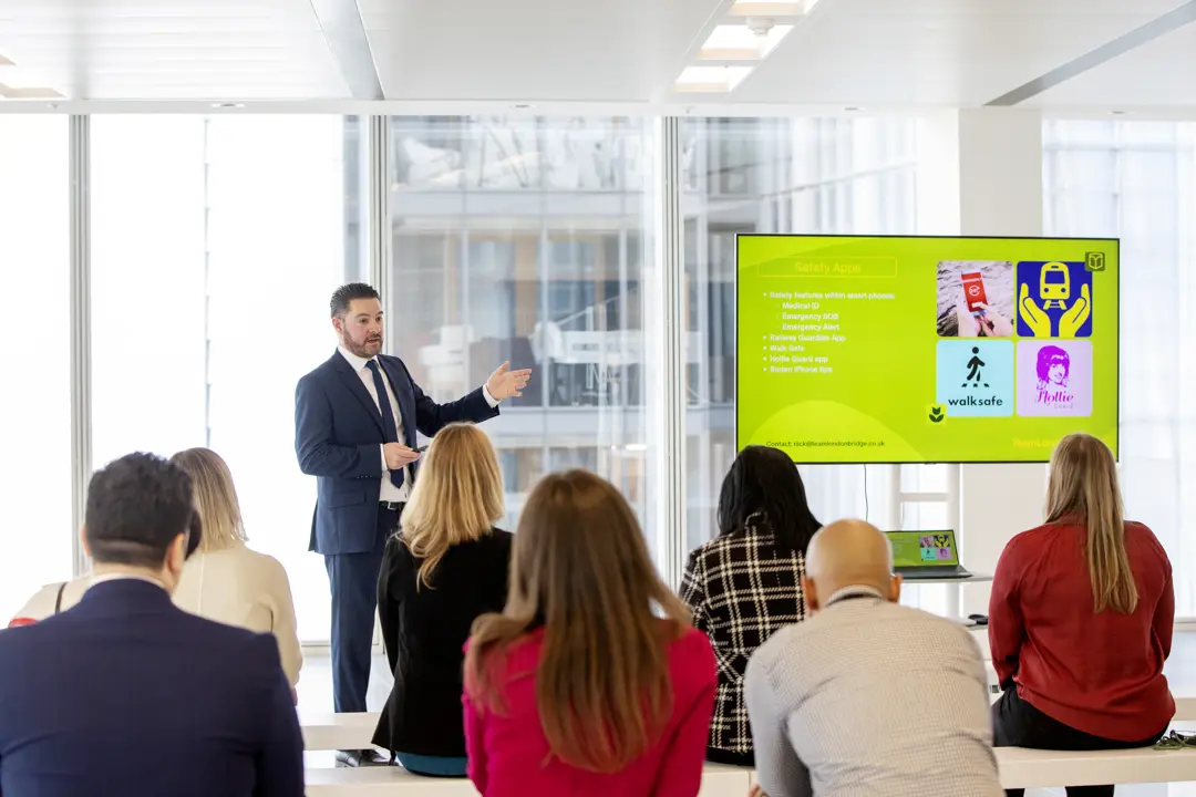 Attendees heard from Nick Morant, Director of Security & Community Safety at Team London Bridge, with helpful tips on crime prevention and travelling safely. Providing recommendations for Safety Apps and further sources of information regarding domestic abuse and drink spiking, Nick also covered things people can do to help others feel safer when they're out in public.