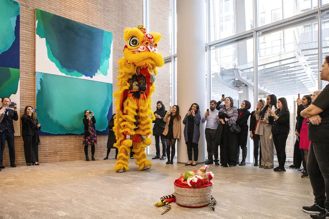 The dancers made their way to The Shard reception where lettuce and red envelopes were offered.